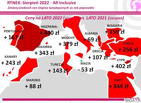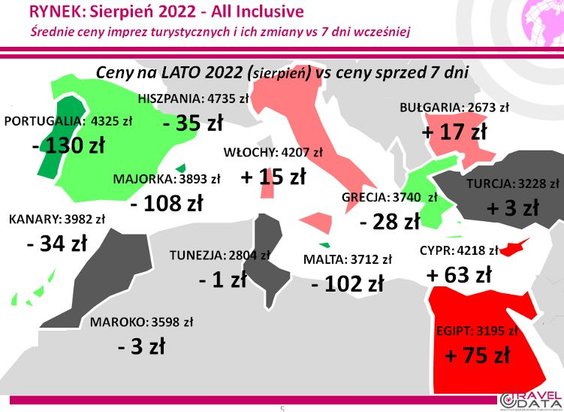 Najwięcej z kolei wzrosty średnie ceny wypoczynku na Synaju, o 103 złote, w Marsa Alam, o 71 złotych, i na Cyprze – o 63 złote.