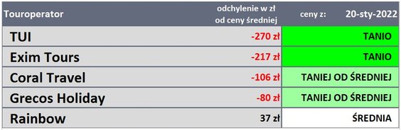 Ta zmiana wpisuje się w serię minimalnych wahań, jakie Traveldata notowała w poprzednich tygodniach, kiedy to cena: podniosła się o 22 złote, spadła o 21 złotych. wzrosła o 18 złotych, spadła o 12 złotych.