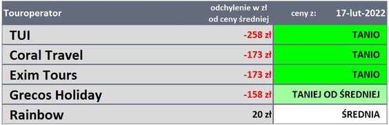 Zmiany cen wycieczek w ostatnim tygodniu obrazuje mapa, a ich przebieg w tym sezonie przedstawia wykres poniżej.