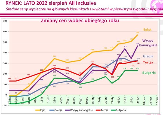 Były też obniżki, najbardziej spadła cena wyjazdu na Dżerbę – o 62 złote, a w mniejszym stopniu na Costa de la Luz i do Portugalii – o 35 i 34 złotych – czytamy w raporcie.
