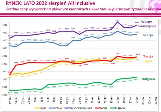 W zeszłym tygodniu średnia cena wycieczki z biurem podróży z wylotem między 1 i 7 sierpnia 2022 wzrosła o 19 złotych – wynika z najnowszego, publikowanego co tydzień, raportu Instytutu Badań Rynku Turystycznego Traveldata*.
