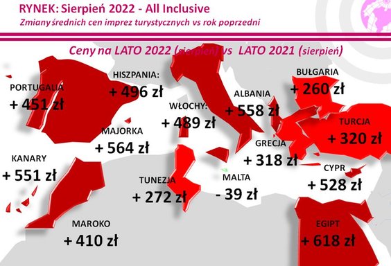 Jeśli chodzi o przeceny, to najbardziej straciły wyjazdy do Maroka, 176 złotych, na Majorkę, 59 złotych, i do Szarm el-Szejk – 52 złote.