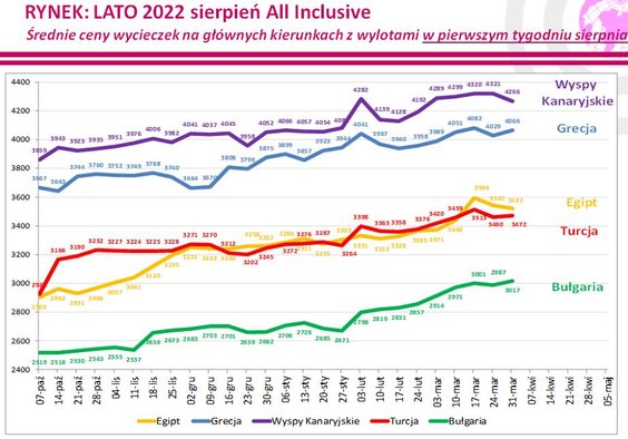 W ostatnim tygodniu średnia cena wycieczki z wylotem między 1 i 7 sierpnia 2022, spadła o 10 złotych – podaje na początek swojego sporządzanego co tydzień raportu Instytut Badań Rynku Turystycznego Traveldata*.