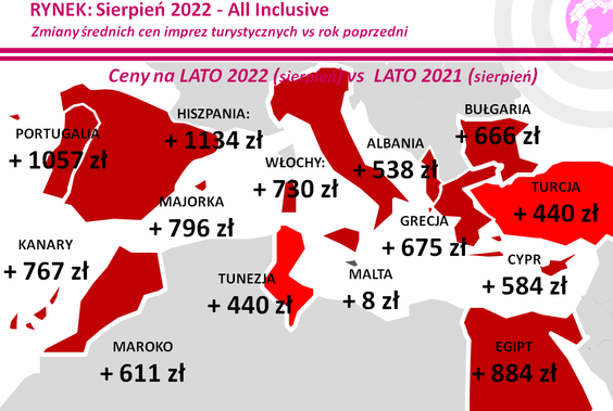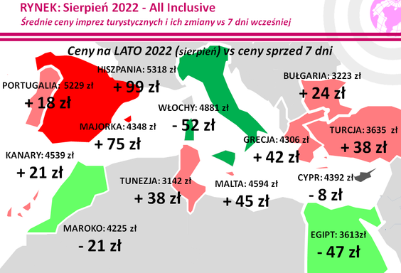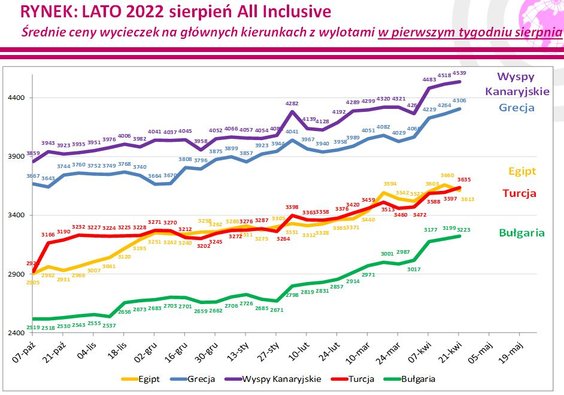 W ostatnim tygodniu, średnia cena wycieczki w biurze podróży z wylotem między 1 i 7 sierpnia wzrosła o 27 złotych – podaje Instytut Badań Rynku Turystycznego Traveldata* w najnowszym, przygotowywanym co tydzień raporcie z badania cen w turystyce zorganizowanej.