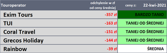 Najbardziej nominalnie w minionym tygodniu zdrożały wycieczki na Lanzarote, o 125 złotych, na Costa de la Luz, o 112 złotych (poprzednio ceny tam wyraźnie spadły) i na Zakintos – o 111 złotych.