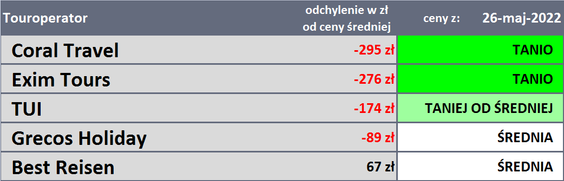 Zmiany cen wycieczek w ostatnim tygodniu obrazuje mapa, a ich przebieg w tym sezonie na najważniejszych kierunkach przedstawia zamieszczony niżej wykres.