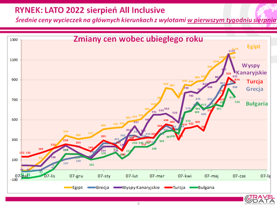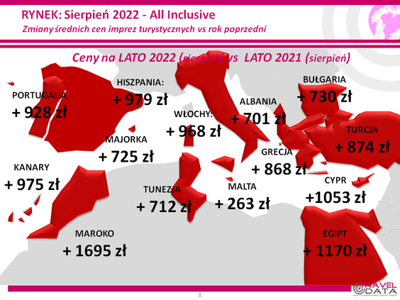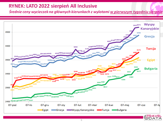 W ostatnim tygodniu średnia cena wycieczki z wylotem między 1 i 7 sierpnia 2022 wzrosła o 90 złotych – informuje w najnowszym raporcie z badania cen Instytut Badań Rynku Turystycznego Traveldata*.