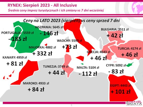 Wspólny wpływ wymienionych czynników na średnią zmianę kosztów wycieczek zdecydowanie nie sprzyjał organizatorom, zawierał się w przedziale 545-555 złotych, a zatem znacząco wyższym niż przed tygodniem i dwoma tygodniami, gdy wynosił odpowiednio 480-490 i 460-470 złotych – odnotowuje Traveldata.
