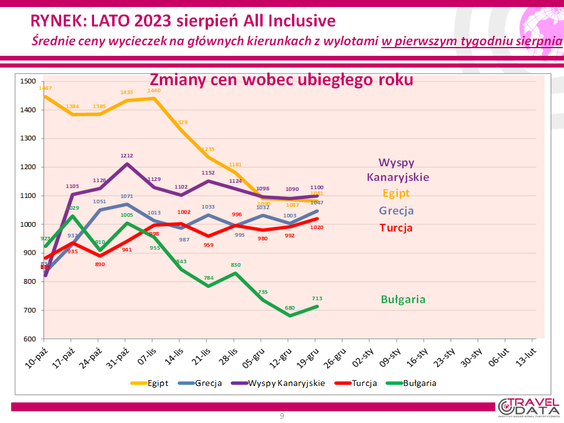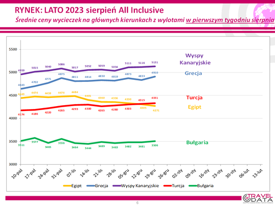 O 29 złotych wzrosła w ostatnim tygodniu średnia cena wycieczki z biurem podróży z wylotami między 31 lipca a 6 sierpnia przyszłego roku – ustalił Instytut Badań Rynku Turystycznego Traveldata. Wynik swojego badania podał w najnowszym raporcie z badania cen, jaki przygotowuje co tydzień*.