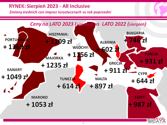 Tym razem – jak odnotowuje Traveldata – najwięcej spadła cena Bułgarii (poprzednio był tam największy wzrost), bo o 218 złotych. Mniej zdrożały Malta, o 182 złote, Cypr, o 114 złotych, Albania (poprzednio był tam znaczny wzrost cen), o 83 złote, Costa del Sol, o 70 złotych, i i na Fuerteventura - o 28 złotych.
