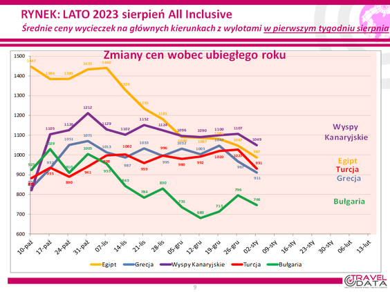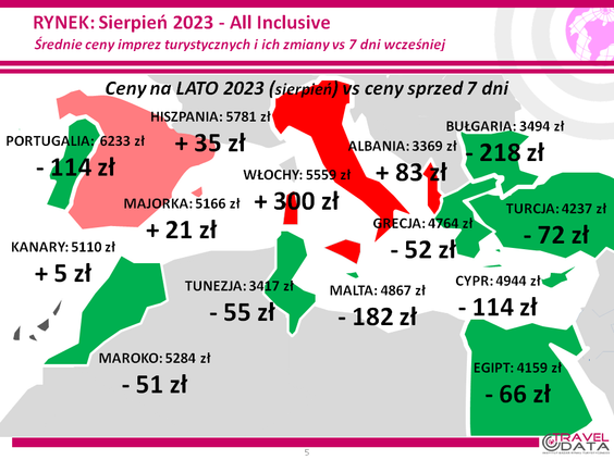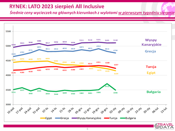 W ostatnim tygodniu średnia cena wycieczki z wylotem między 31 lipca a 6 sierpnia 2023 roku spadła o 36 złotych – podaje w najnowszym raporcie Instytut Badań Rynku Turystycznego Traveldata*.