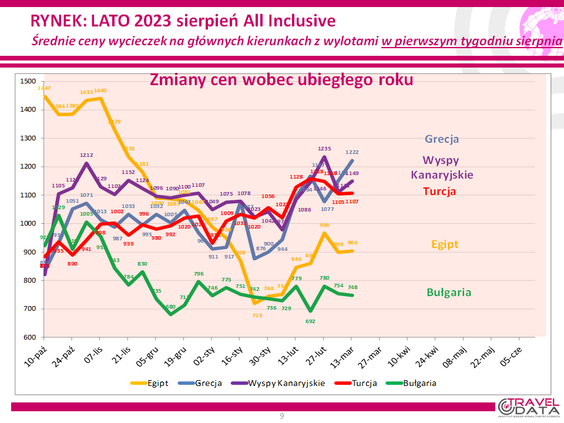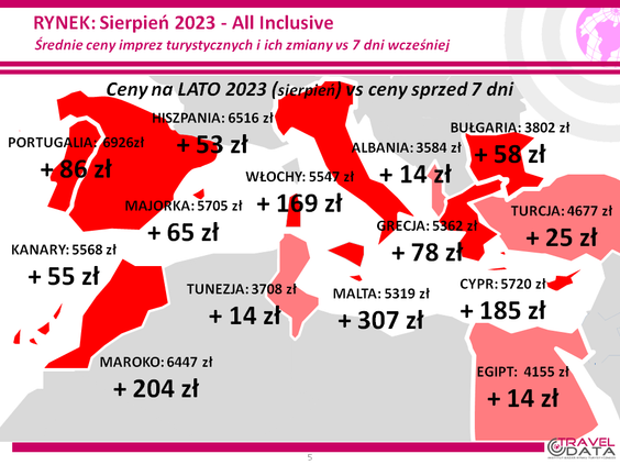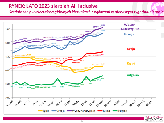 W ostatnim tygodniu średnia cena wycieczki z biurem podróży z wylotem między 31 lipca a 6 sierpni...