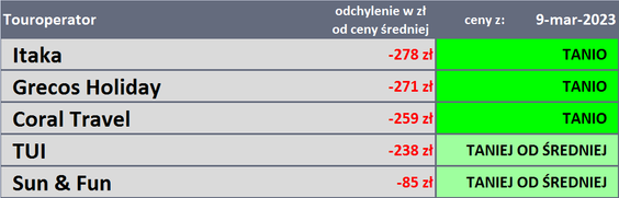 Z kolei największe zniżki wystąpiły w cenach wakacji na Rodos i Lanzarote, o 89 i 65 złotych, a o 15 złotych w Szarm el-Szejk.
