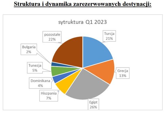Dane te pokazują spore przesunięcie zainteresowania turystów. Rok wcześniej rozkład udziałów poszczególnych kierunków według przychodów był bowiem inny - na Turcję przypadło ich wtedy 24 procent, na Grecję i na Egipt po 15, a na Hiszpanię 9 procent.