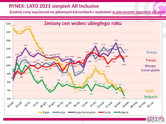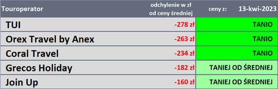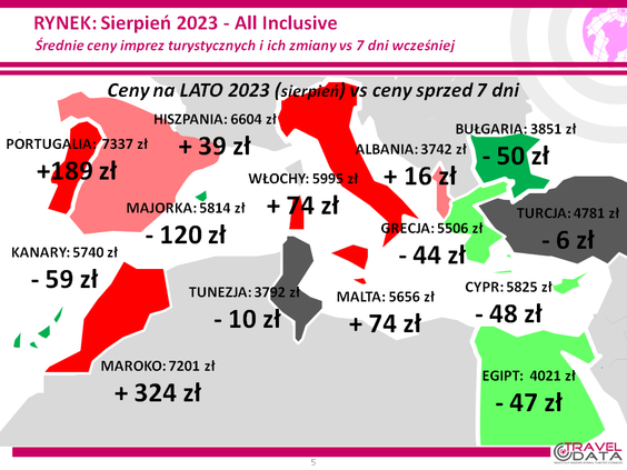 Ale były też podwyżki. Największe objęły Kalabrię i Maroko – o 327 i 324 złote. Mniej skoczyła cena Portugalii - o 189 złotych.