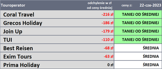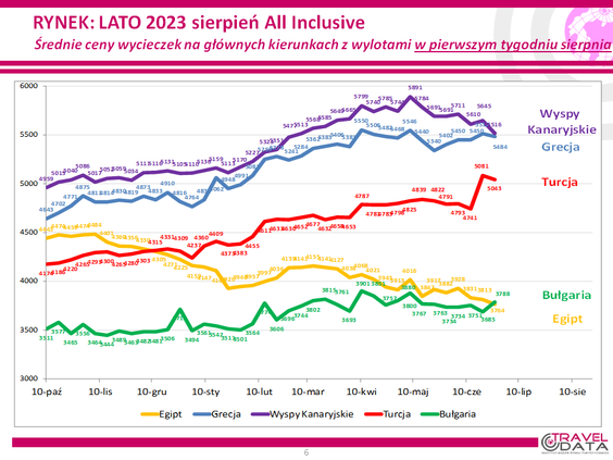 W ostatnim tygodniu średnia cena wycieczki z wylotem między 31 lipca a 6 sierpnia 2023 spadła o 15 złotych – podaje w najnowszym raporcie Instytut Badań Rynku Turystycznego Traveldata*. Można tym samym powiedzieć, że wróciła do stanu sprzed dwóch tygodni, ponieważ tydzień temu wzrosła o 16 złotych.