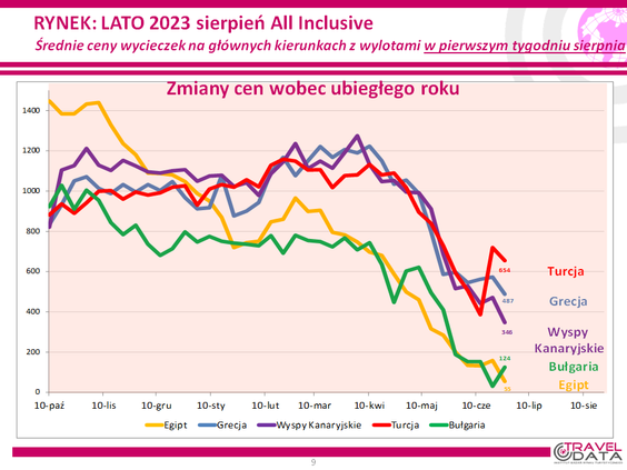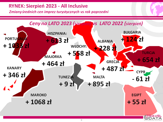 Ceny poszczególnych kierunków różniły się jednak znacznie. Największe przeceny Traveldata odnotowała w wypadku Teneryfy, Kosu (poprzednio ceny na nich najbardziej wzrosły) i Portugalii – o 342, 193 i 185 złotych.