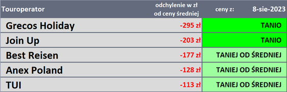 Porównanie średniej ceny imprez turystycznych z ostatniego tygodnia ze średnią ceną sprzed roku (wyjazd w pierwszym tygodniu września 2022) pokazało, że w tym roku średnia była wyższa o 393 złote.