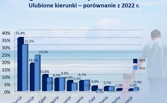 Na drugim miejscu znalazła się w tym rankingu Grecja. Jej udział był mniejszy niż zeszłoroczny - 18,5 procent, o 5,5 punktu procentowego mniej. Trzecie miejsce zajął w tym roku Egipt, który urósł z 8,8 procent rok temu do 10,8 procent.