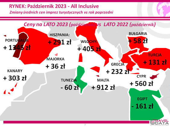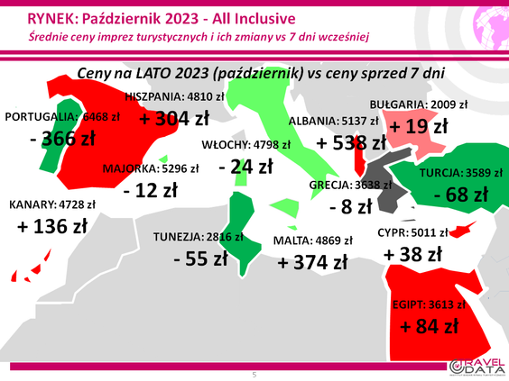Wśród wiodących kierunków w ciągu roku podrożały wycieczki na Wyspy Kanaryjskie, do Grecji, do Turcji i do Bułgarii – o 303, 232, 131 i 58 złotych. A wyraźnie obniżyła się cena wyjazdu do Egiptu - o 161 złotych.