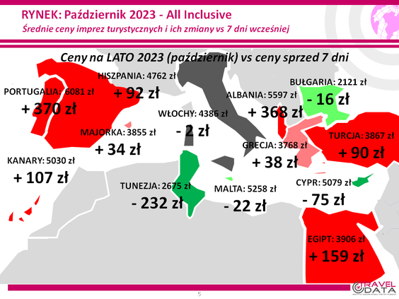 Jak czytamy w raporcie, największe zwyżki średnich cen w ostatnim tygodniu zanotowano w wypadku wyjazdów do Portugalii, Albanii i na Lanzarote - o 370, 368 i o 274 złote.