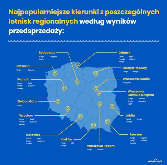 Z analizy Wakacje.pl wynika, że obecnie liderem przedsprzedaży jest Turcja. Drugie miejsce zajmuje Grecja, trzecie Egipt, a czwarte Tunezja. Kolejne tygodnie pokażą, czy i jak ranking popularności będzie się zmieniać.