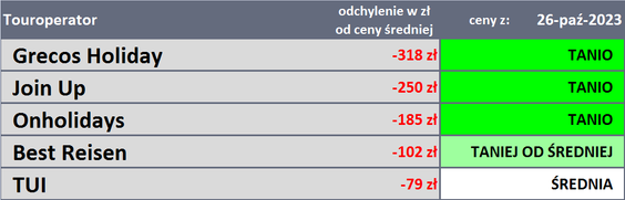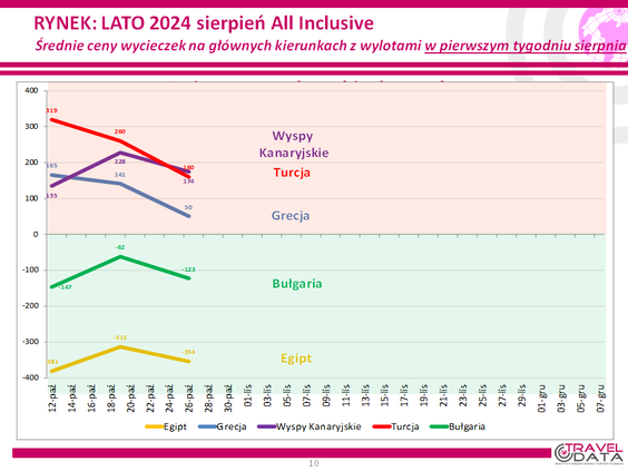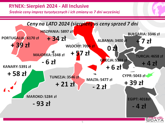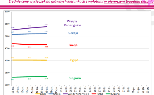 Najbardziej wzrosły średnie ceny wyjazdów na półwysep Chalcydycki (poprzednio był tam duży spadek cen), o 171 złotych, a nieco mniej na Teneryfę (ponownie) i do Hurghady – o 129 i 100 złotych.