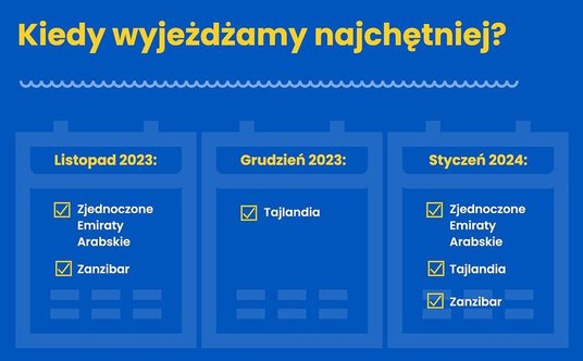 Statystyki pokazują, że najczęściej wybieranym kierunkiem są Zjednoczone Emiraty Arabskie, drugie miejsce zajmuje Tajlandia, a trzecie Zanzibar. Łącznie na te kierunki przypada nieco ponad jedną trzecią sprzedaży oferty do dalekich krajów. ZEA przodowały w rankingu także w zeszłym roku, ale przed pandemią zajmowały czwarte miejsce. Widać też odbicie Tajlandii, która przed pandemią była liderem sprzedaży zimowej oferty egzotycznej, ale na dobre do programów biur podróży powróciła dopiero w ubiegłym roku. Wcześniej nie pozwalały na to bardzo restrykcyjne zasady podróżowania związane z pandemią.