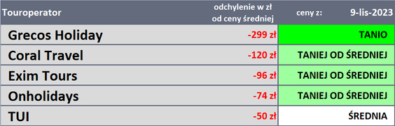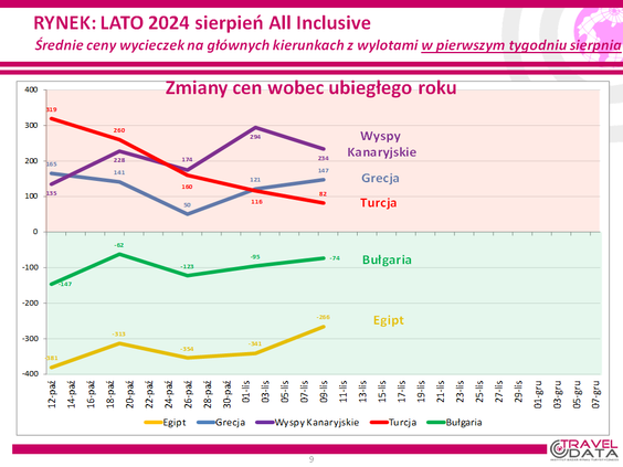 Największy wzrost średniej ceny Traveldata odnotowała w wypadku wyjazdów na Półwysep Chalcydycki (poprzednio miał tam miejsce duży spadek cen), Korfu i Teneryfę – o 178, 169 i 55 złotych.