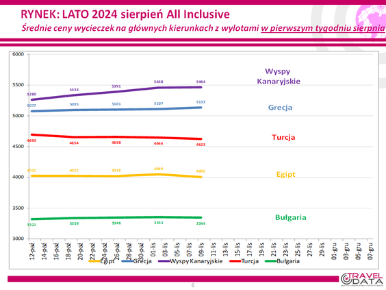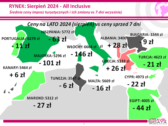 W zeszłym tygodniu średnia cena wycieczki z biurem podróży z wylotem między 5 i 11 sierpnia 2024 roku spadła o 16 złotych – podaje Instytut Badań Rynku Turystycznego Traveldata w najnowszym podsumowaniu.