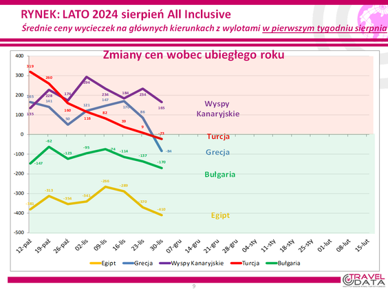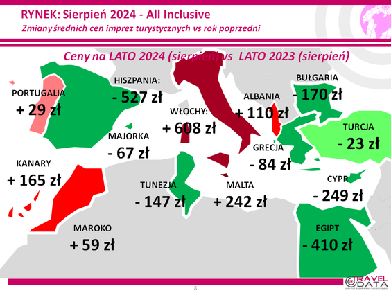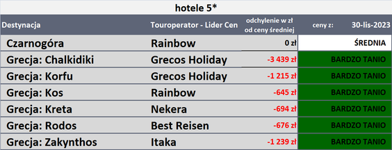 Największy wzrost cen w ostatnim tygodniu Traveldata odnotowała w wypadku wakacji na półwyspie Chalcydyckim (przed tygodniem był tam największy spadek cen) – o 244 złote. Mniej rosły ceny Kos i Teneryfy – o 126 i 50 złotych.
