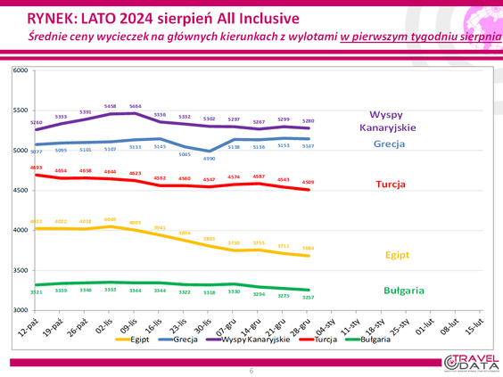 W minionym tygodniu ceny wszystkich pięciu kluczowych kierunków wyjazdów z biurami podróży spadły. Najbardziej potaniały wyjazdy do Turcji i Egiptu - o 34 i 27 złotych. W mniejszym stopniu spadły średnie ceny wyjazdów na Wyspy Kanaryjskie, do Bułgarii i do Grecji - o 19, 18 i 6 złotych.