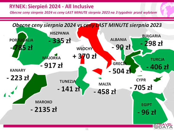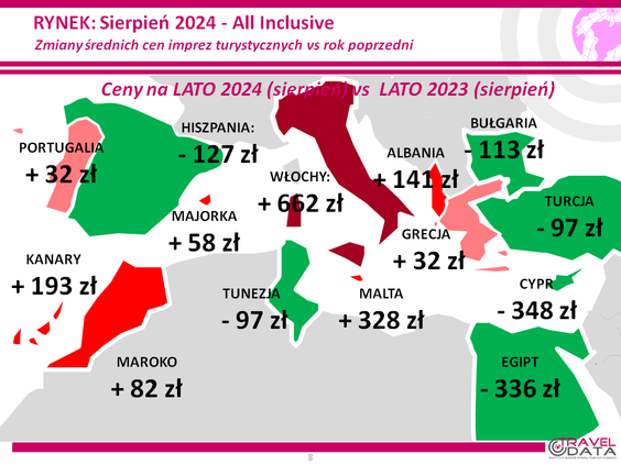 Największą zwyżkę cen notowano w wypadku wyjazdów do Portugalii, o 223 złote, a mniejsze na Maltę i na hiszpańskie wybrzeże Costa de la Luz – o 193 i 151 złotych.