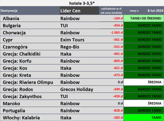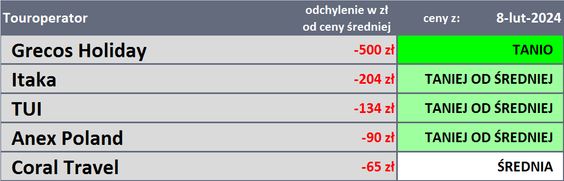 To jedna z największych podwyżek w ostatnich miesiącach. Tydzień wcześniej wycieczki zdrożały średnio o 42 złote, a jeszcze wcześniej średnia cena spadła o 3 złote, skoczyła o 93 złote, spadła o 23 złote, wzrosła o 49 złotych, spadła o 6 złotych, spadła o 7 złotych i wzrosła o 40 złotych. Przewaga zwyżek pokazuje kierunek zmian – im bliżej sezonu letniego, tym są one wyższe.