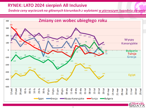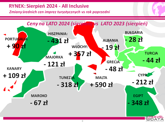 Największe zwyżki średnich cen odnotowała w odniesieniu do Malty, o 100 złotych, Kalabrii, o 96 złotych i Costa del Sol - o 49 złotych.