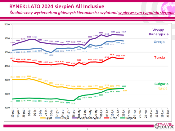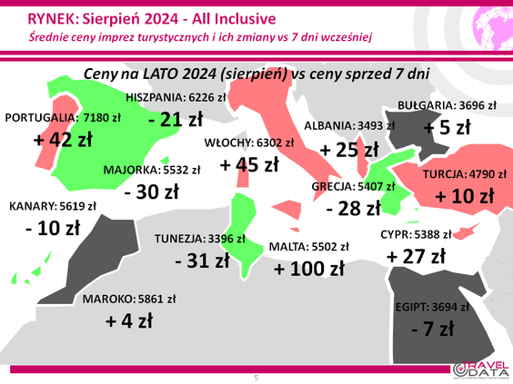 Wycieczka z wylotem między 5 a 11 sierpnia kosztowała w ostatnim tygodniu o 6 złotych mniej niż tydzień wcześniej – informuje w najnowszym raporcie z przeglądu cen w biurach podróży Instytut Badań Rynku Turystycznego Traveldata*.