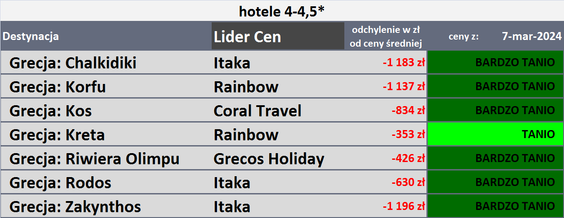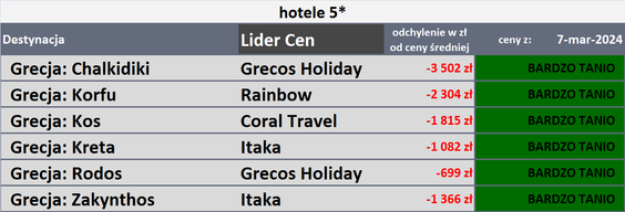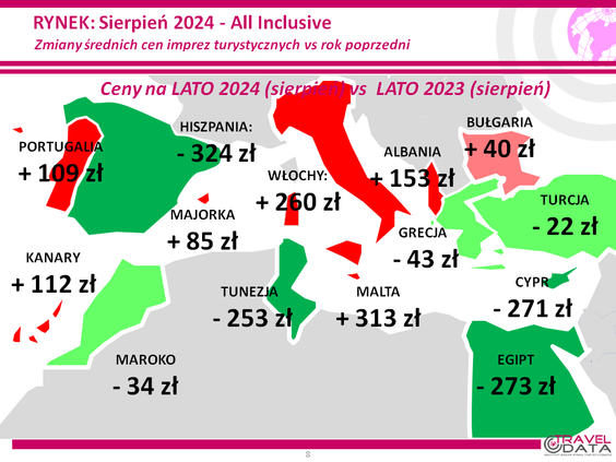 Jak podaje Traveldata, najwięcej zdrożały w ostatnim tygodniu wakacyjne wyjazdy na Costa del Sol, o 310 złotych, na Sycylię, o 243 złote, i do Maroka – o 229 złotych. Największe zniżki cen wycieczek wystąpiły z kolei w wypadku Kalabrii (poprzednio ceny tam dość istotnie wzrosły), o 673 złote. A niewielkie miały miejsce w odniesieniu do Korfu i Zakintos - o 34 i 10 złotych.