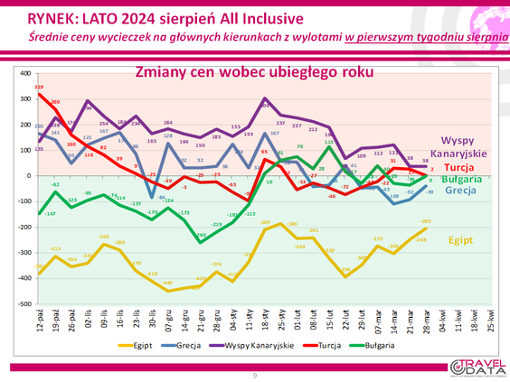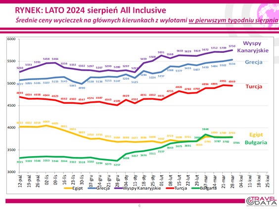 W ostatnim tygodniu średnia cena wycieczki z wylotem między 5 a 11 sierpnia spadła o 13 złotych – ogłosił Instytut Badań Rynku Turystycznego Traveldata w najnowszym raporcie z monitorowania cen w biurach podróży.