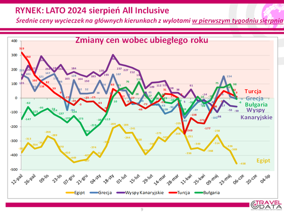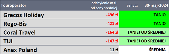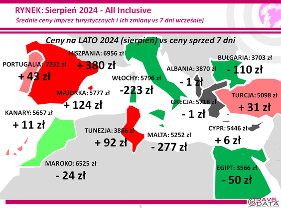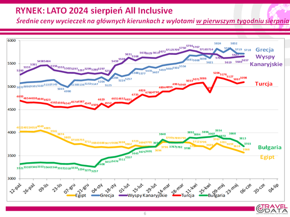 Taka zmiana jest tylko zmianą symboliczną, sugeruje raczej stabilność cen w biurach podróży na progu sezonu wakacyjnego. Tym bardziej, że w ostatnich tygodniach średnia cena spadła o 34 złote, a wcześniej wzrosła o 13 złotych, spadła o 53 złote, wzrosła o 118, spadła o 58, wzrosła o 8, spadła o 10 złotych, wzrosła o 74 złote, spadła o 13 złotych, wzrosła o 28, 12 i o 87.
