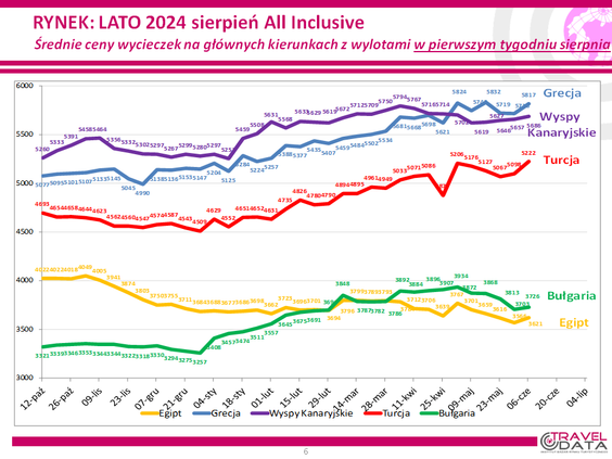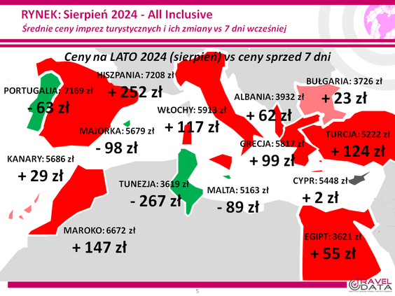 O 38 złotych wzrosła w zeszłym tygodniu średnia cena wycieczki z wylotem między 5 a 11 sierpnia – odnotował Instytut Badań Rynku Turystycznego Traveldata w najnowszym raporcie z monitorowania ofert biur podróży*.