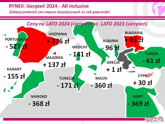 Z kolei zdecydowanie największa podwyżka średniej ceny wycieczek miała miejsce w wypadku podróży na Półwysep Chalcydycki – o 746 złotych. Dużo mniej zdrożały Maroko i Majorka - o 105 i 84 złote.