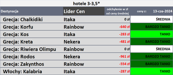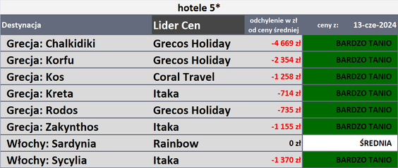 Jak podaje Traveldata, największą zniżkę cen w ostatnim tygodniu odnotowała ona w wypadku wakacji w Turcji Egejskiej (poprzednio był tam największy wzrost cen) – o 394 złote. Sporo mniej przecenili touroperatorzy Sycylię i Zakintos – średnio o 259 i 235 złotych.