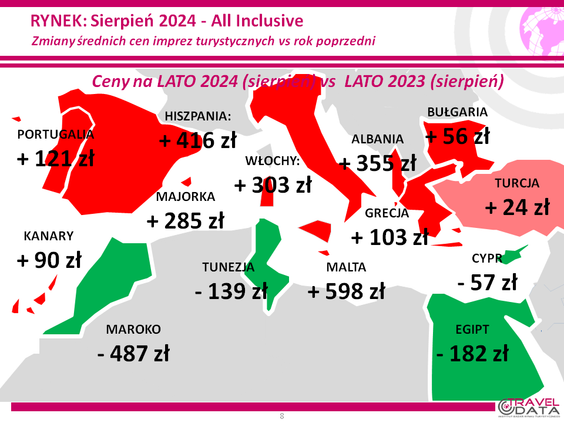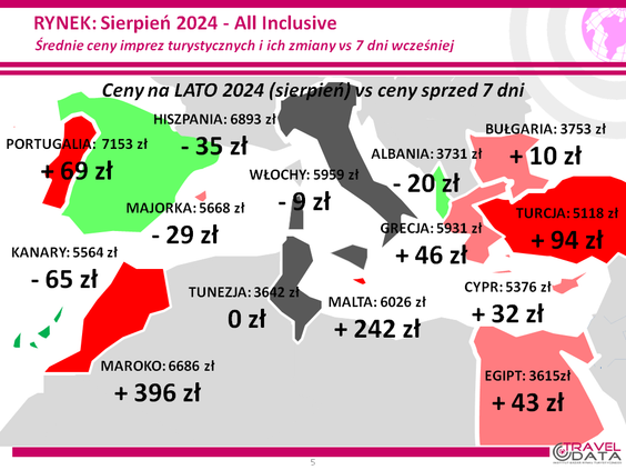Jak informuje w najnowszym raporcie z monitorowania cen w biurach podróży Instytut Badań Rynku Turystycznego Traveldata, w minionym tygodniu średnia cena wycieczki z wylotem między 5 a 11 sierpnia wzrosła o 35 złotych*.