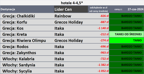 W minionym tygodniu wzrosły ceny czterech z pięciu najważniejszych kierunków wyjazdów turystyczny...