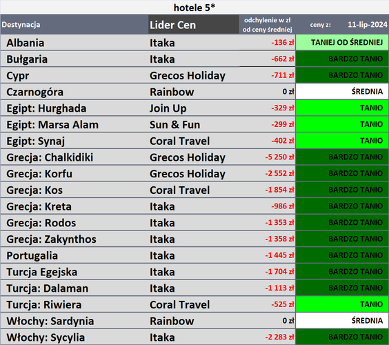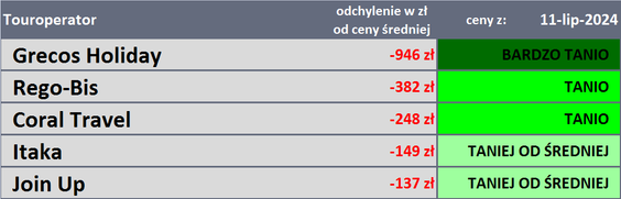 Jak relacjonują autorzy analizy, największą zniżkę cen w ostatnim tygodniu odnotowali odnośnie do wyjazdu na Półwysep Chalcydycki, o 552 złote, a także na Fuerteventurę i Kretę – o 205 i 186 złotych.