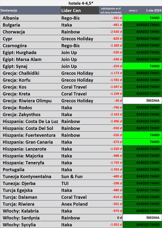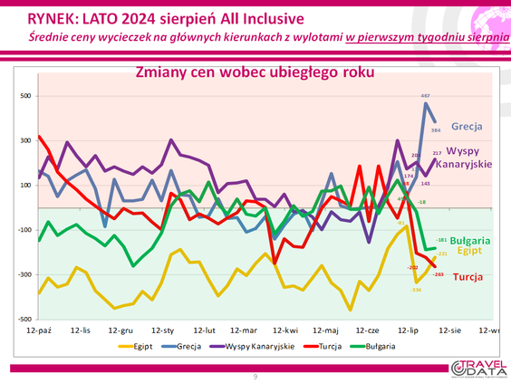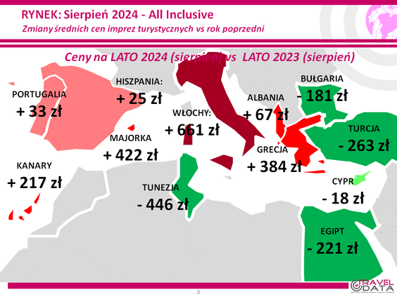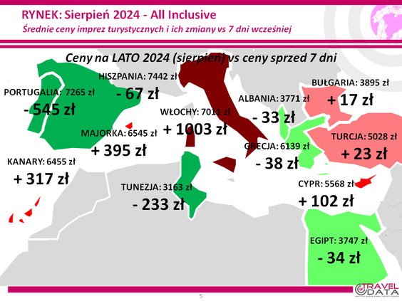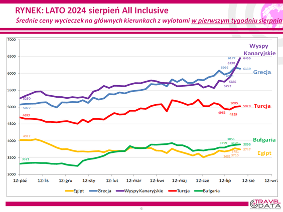Trzeba też odnotować, że od zeszłego roku reflektor Traveldaty nastawiony był na ten sam okres – pierwszy pełny tydzień sierpnia 2024 roku, a więc szczyt sezonu letniego. Już za tydzień eksperci analizujący rynek wycieczek zorganizowanych wezmą pod lupę kolejny termin – prawdopodobnie jeden z tygodni wrześniowych lub początek października.