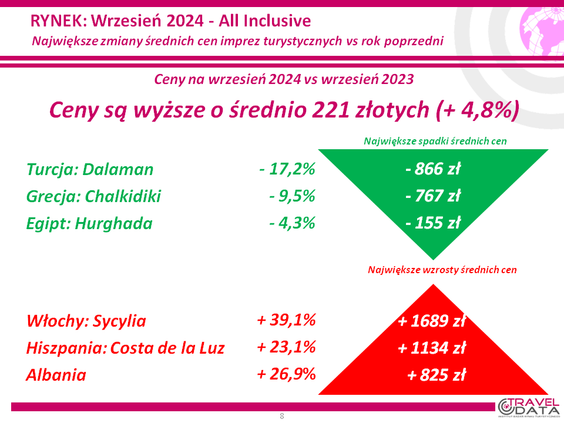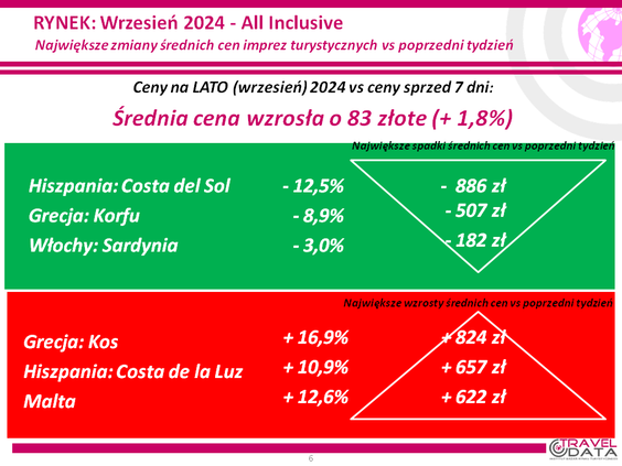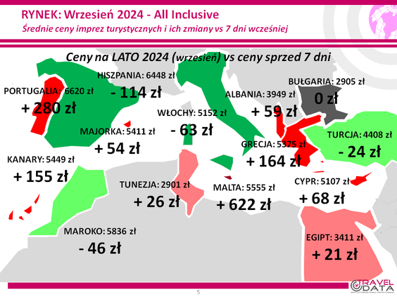 W minionym tygodniu średnia cena wycieczki z wylotem między 2 a 8 września wzrosła o 83 złote – ogłosił w najnowszym raporcie Instytut Badań Rynku Turystycznego Traveldata*.