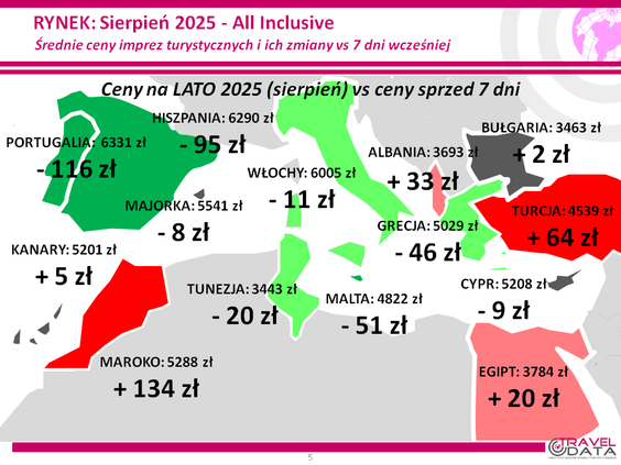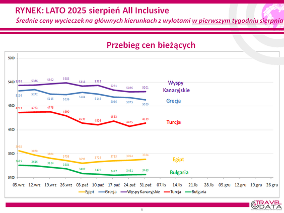 O 6 złotych spadła w minionym tygodniu średnia cena wycieczki z wylotem między 4 a 10 sierpnia przyszłego roku – zauważa w najnowszym raporcie Instytut Badań Rynku Turystycznego Traveldata, który obserwuje ceny ofert biur podróży*.