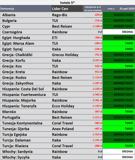 Z drugiej strony były też wzrosty. Największy objął wakacje w Maroku, Turcji Egejskiej i na Korfu – odpowiednio o 134, 128 i 59 złotych.
