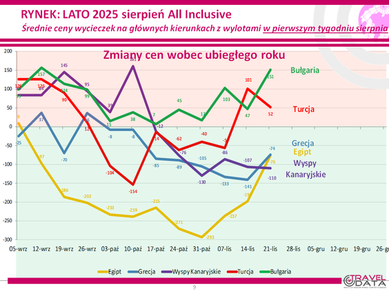 Ta informacja oznacza, że do biur podróży mogły wrócić obniżki, których wcześniej było dziesięć - 17, 6, 37, 31, 15, 59, 49, 83, 10 i 32 złote - i dopiero w jedenastym tygodniu cena na chwilę wzrosła, o 37 złotych.